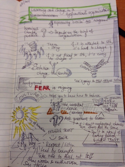 I am growing fond of the live noting of conference talks – with the unspoken rule of posting it on twitter before the last attendee leaves the room. I very much like the live time-pressure aspect of it since it doesn’t allow my evil perfectionist side to take over. My DEWT-friend and colleague Ruud Cox has gently tried to nudge me into two-stage sketchnoting or even non-live sketchnoting (books, recorded talks). As my conference calendar is fairly empty for the rest of the year, maybe I’ll have a go at that.