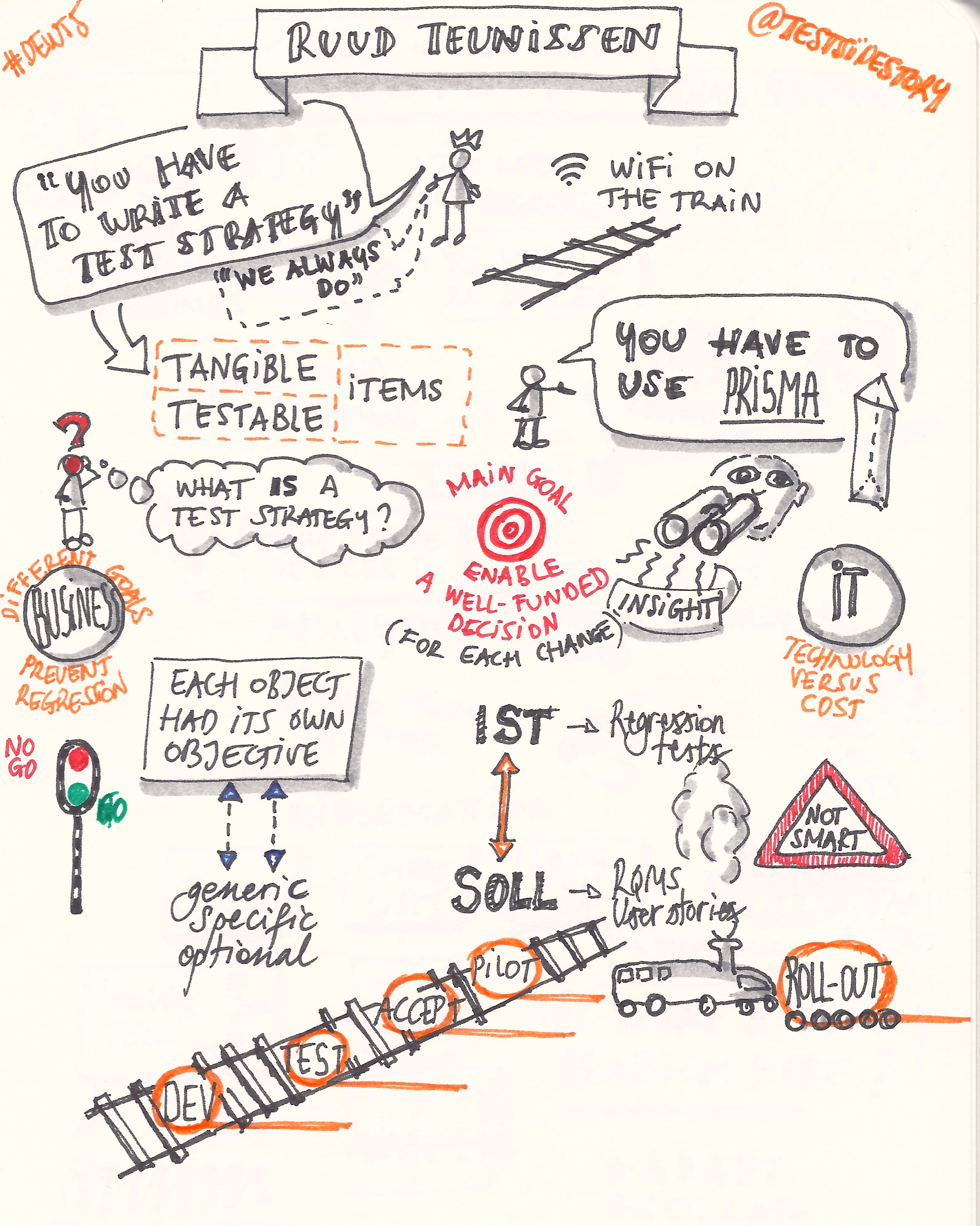 The elevator speech: DEWT is a weekend full of experience reports and facilitated discussions with a pleiad of (inter)national testers. And fun, of course: games, beer, walks in the woods! And let’s not forget that good old friend Laphroaig. The theme this year was “Test Strategy”, hand-picked by this year’s content owner Ruud Cox. The diversity in the reports was striking, as was the diversity of ways in which people interpret the notion of a test strategy. Yes, let’s assume it was long elevator trip.